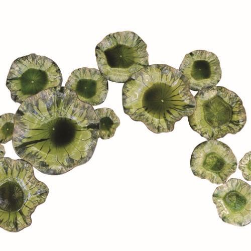 صحن السوسن، من الخزف الممزوج بالأخضر المورق، قطعة فنية للحائط وإضافة جميلة للمساحة الخاصة بك.