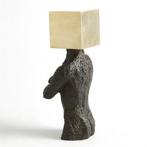 منحوتة رجل مع رأس على شكل مكعب مصنوع من النحاس الأصفر